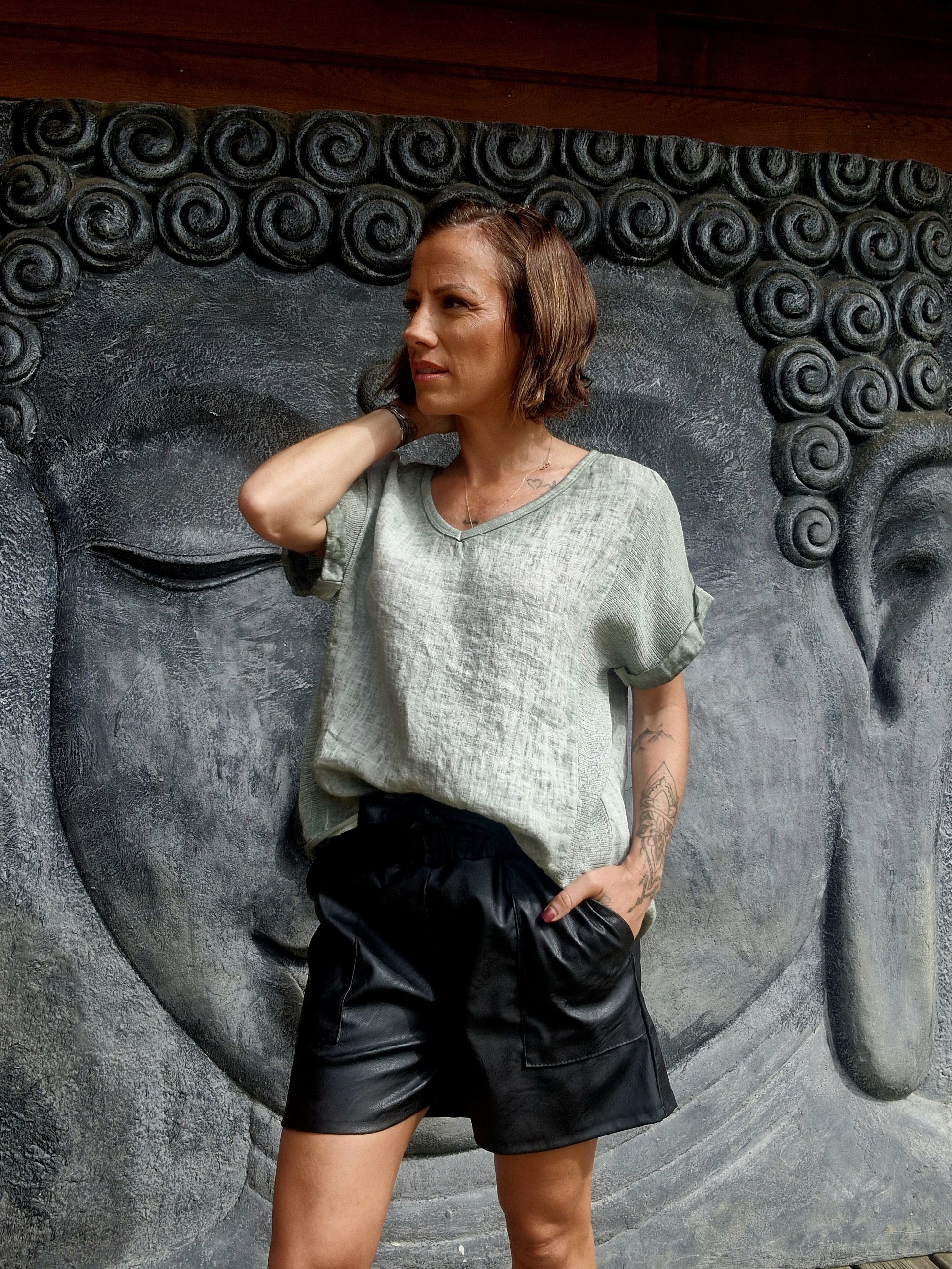 Apportez une touche chic et moderne à vos looks avec le short SIERRA en simili cuir, alliant confort et style.
